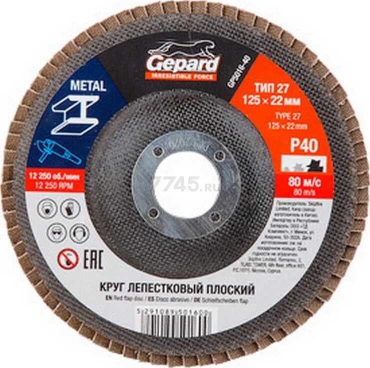 Информация о товаре Круг лепестковый 125х22,2 мм P40 плоский GEPARD (GP5016-40)