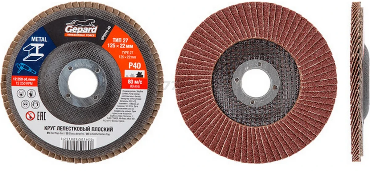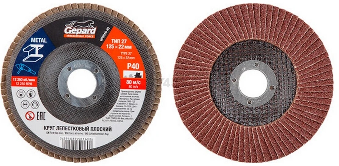 Описание товара Круг лепестковый 125х22,2 мм P40 плоский GEPARD (GP5016-40)