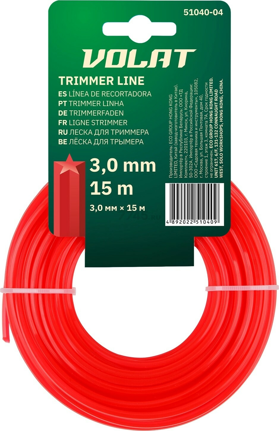 Леска для триммера d 3,0 мм х 15 м сечение звездочка ВОЛАТ (51040-04)