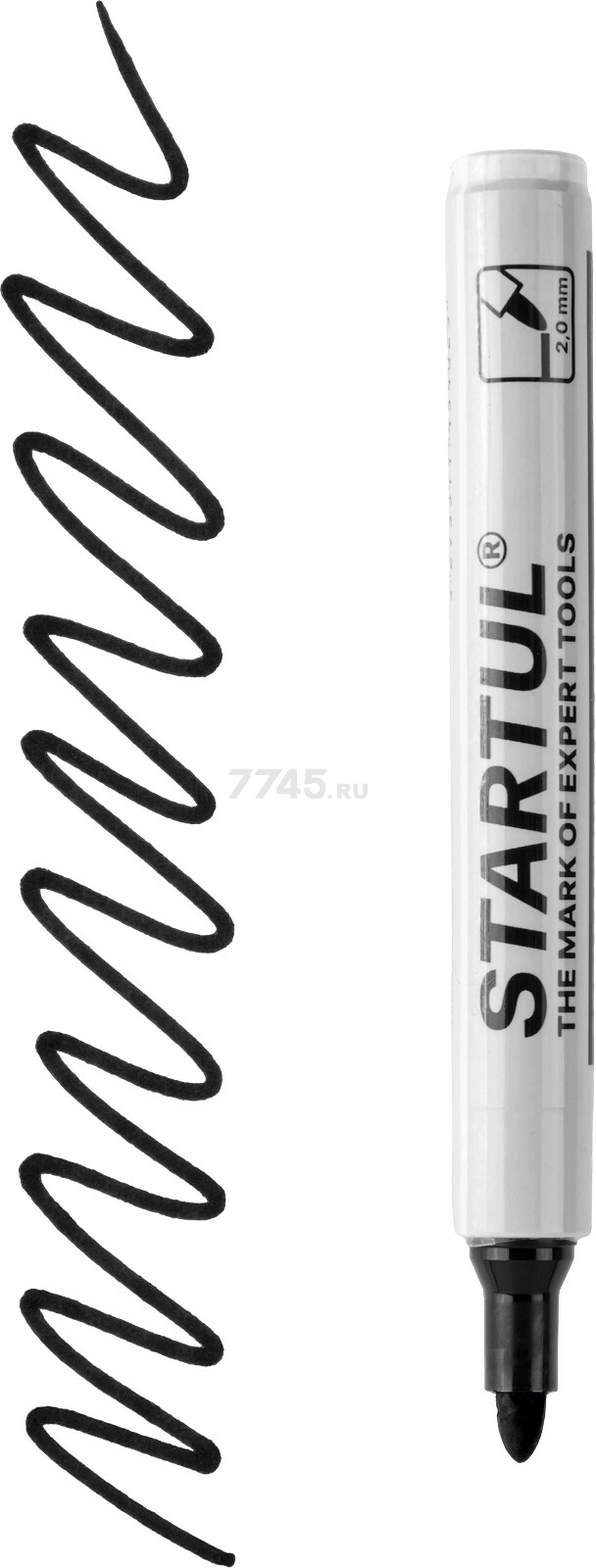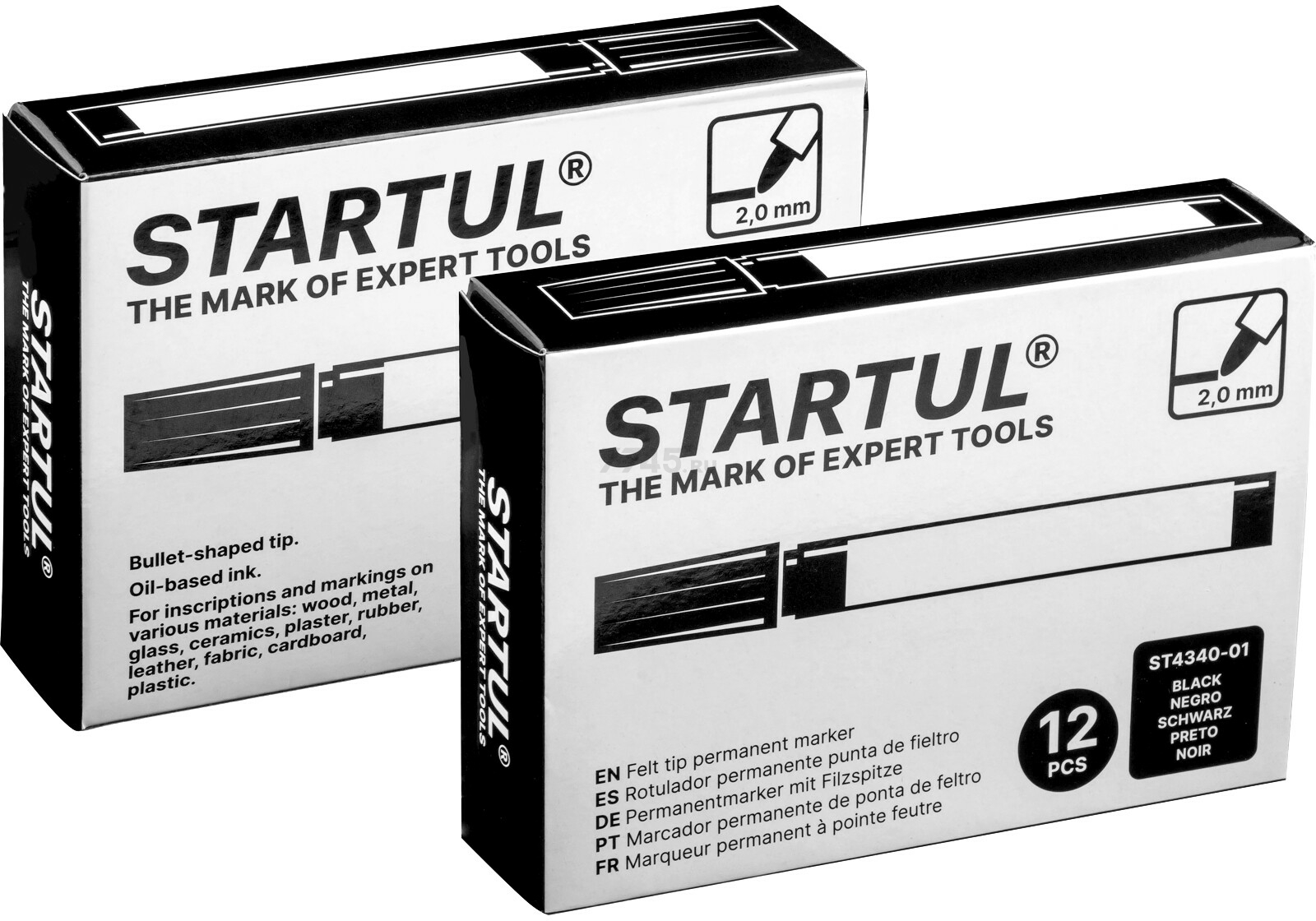 Маркер перманентный фетровый STARTUL Profi черный (ST4340-01) - для нанесения надписей и маркировки на различных материалах - дерево, металл, стекло, керамика, гипс, резина, кожа, ткань, картон, пластик.