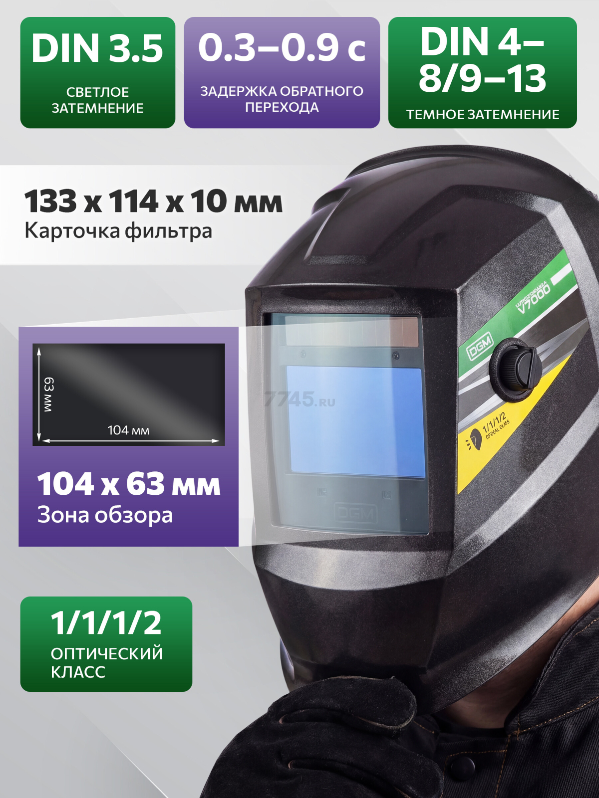 Информация о товаре Маска сварочная хамелеон DGM V7000 черный (V7000BL1)