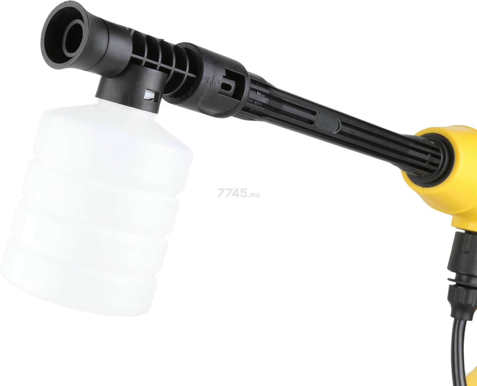 Пеногенератор в комплекте. Для удобства и повышения качества очистки комплект поставки содержит пеногенератор, который обеспечивает формирование пены и равномерное её нанесение, облегчая борьбу с сильными загрязнениями, которые затруднительно удалить с помощью воды без применения моющих средств.