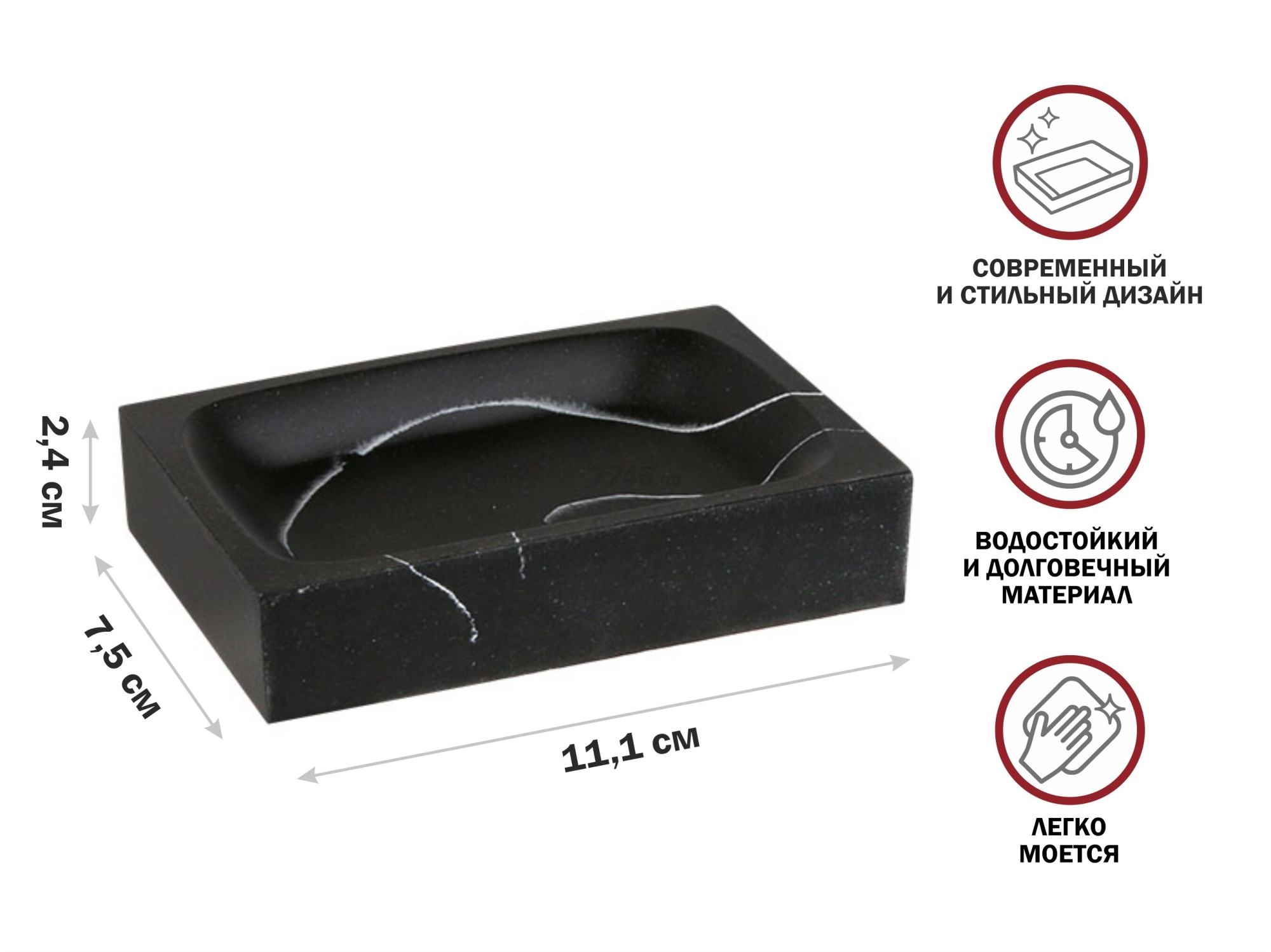 Мыльница PERFECTO LINEA Marble (35-000014) имеет необычный дизайн, созданный с помощью композитного материала: полирезина под натуральный камень. Благодаря такой структуре изделие имеет низкую теплопроводность, приятное на ощупь, а также устойчиво к влаге и повышенным температурам. Преимущества товаров для ванной комнаты из полирезина:
