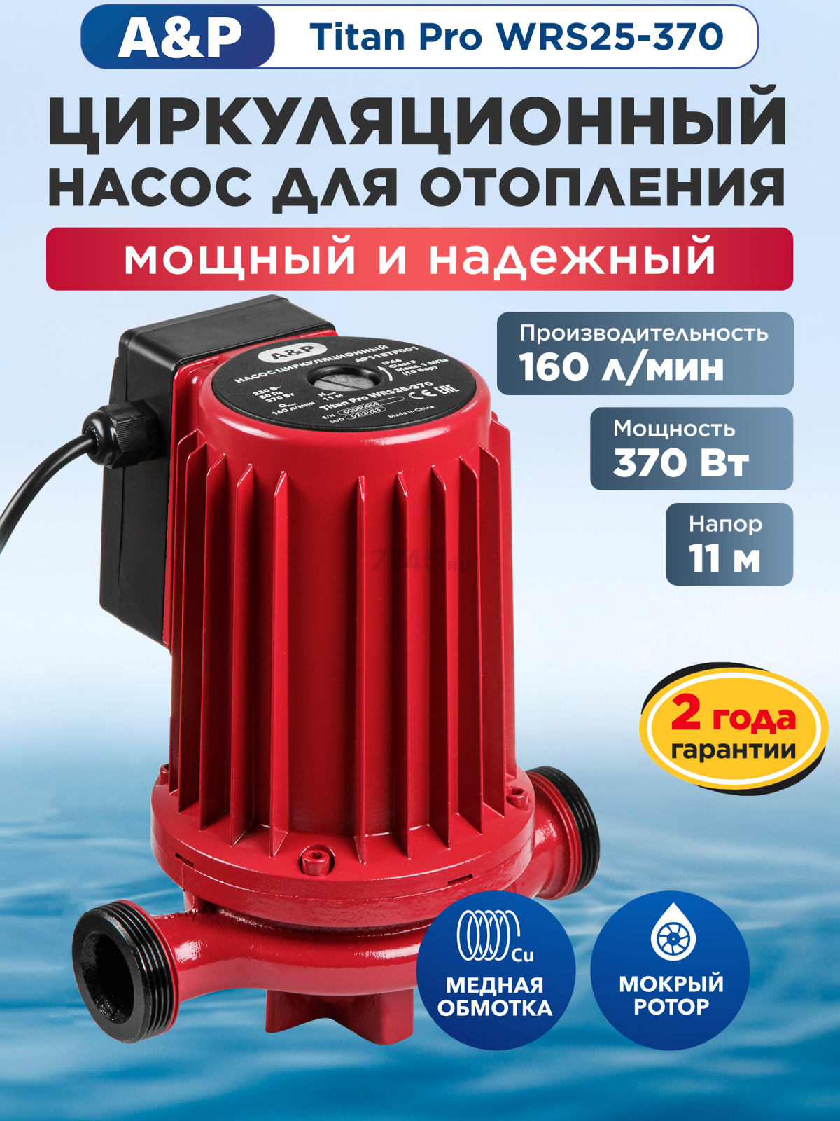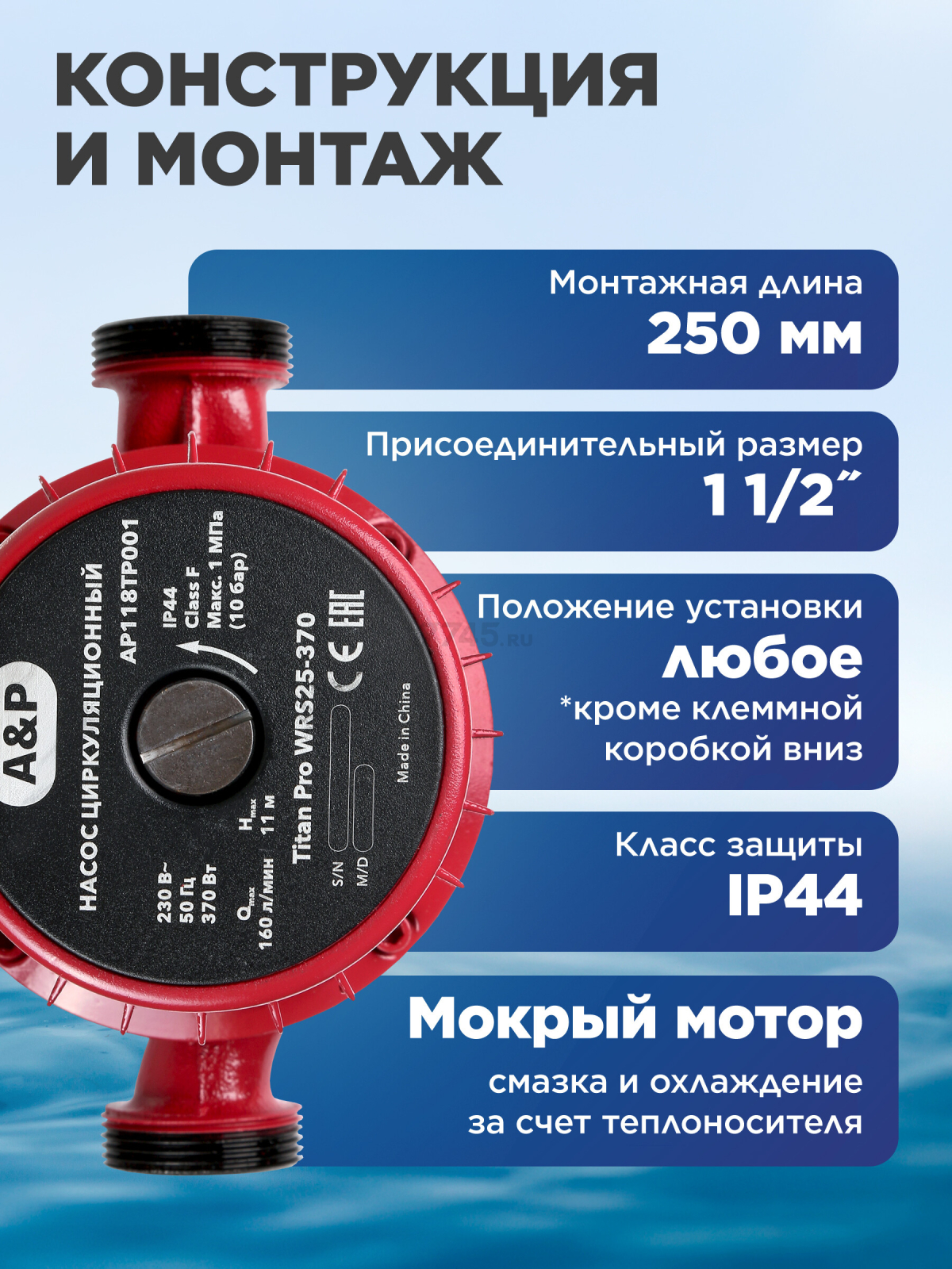 Информация о товаре Насос циркуляционный A&P Titan Pro WRS25-370 (AP118TP001)