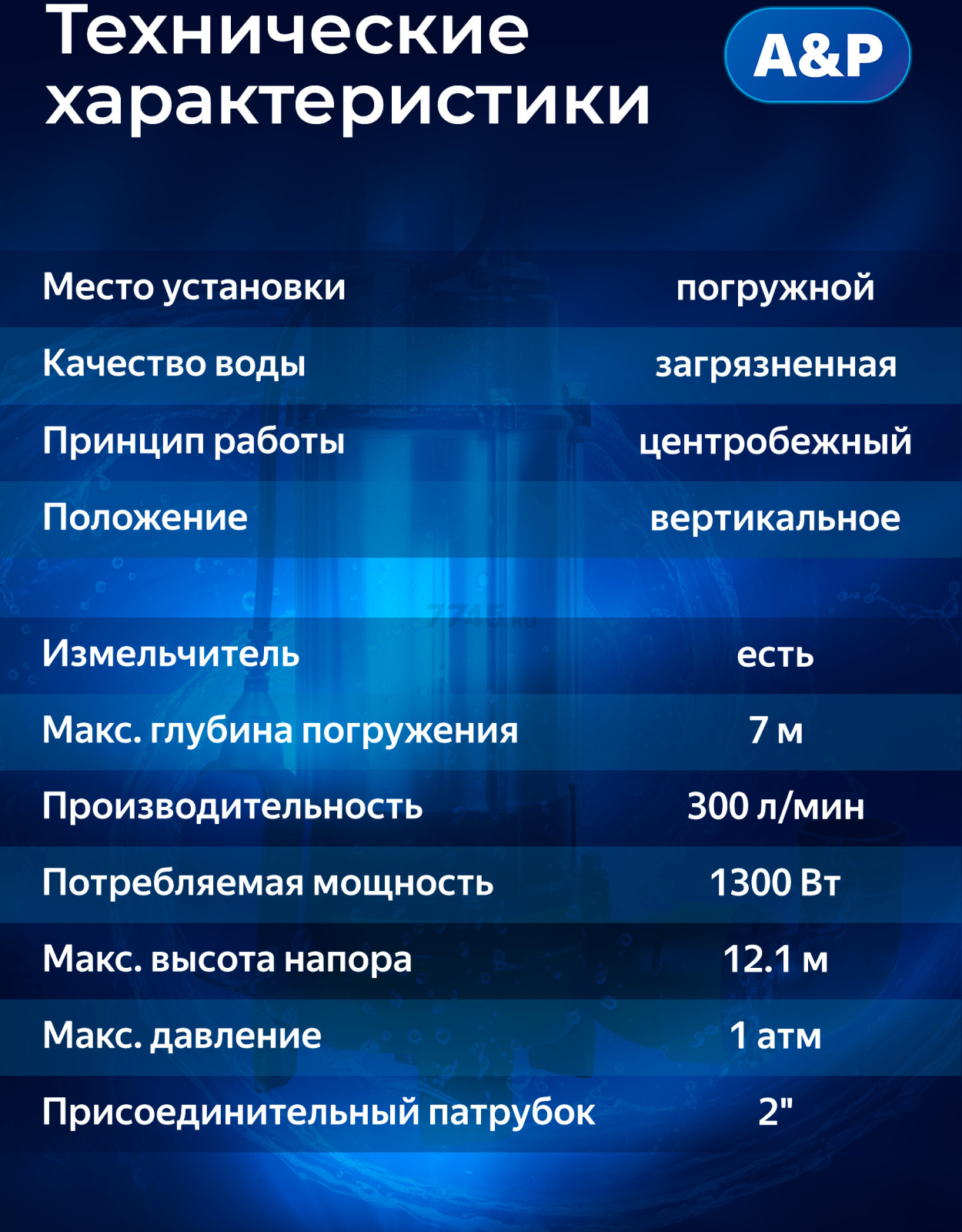 Информация о товаре Насос фекальный A&P Marvel CD 1.3 (AP02A03)