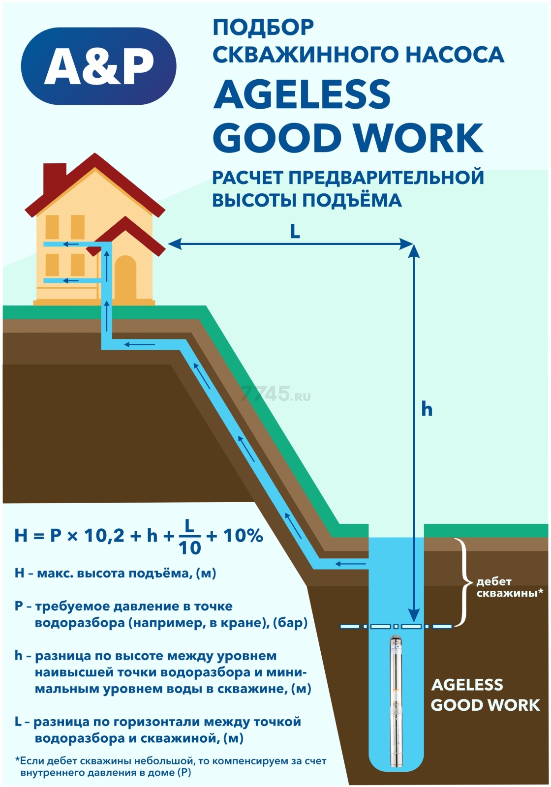 Описание товара Насос скважинный A&P Ageless-2.5-1500/52-2/31-A (AP01A16)