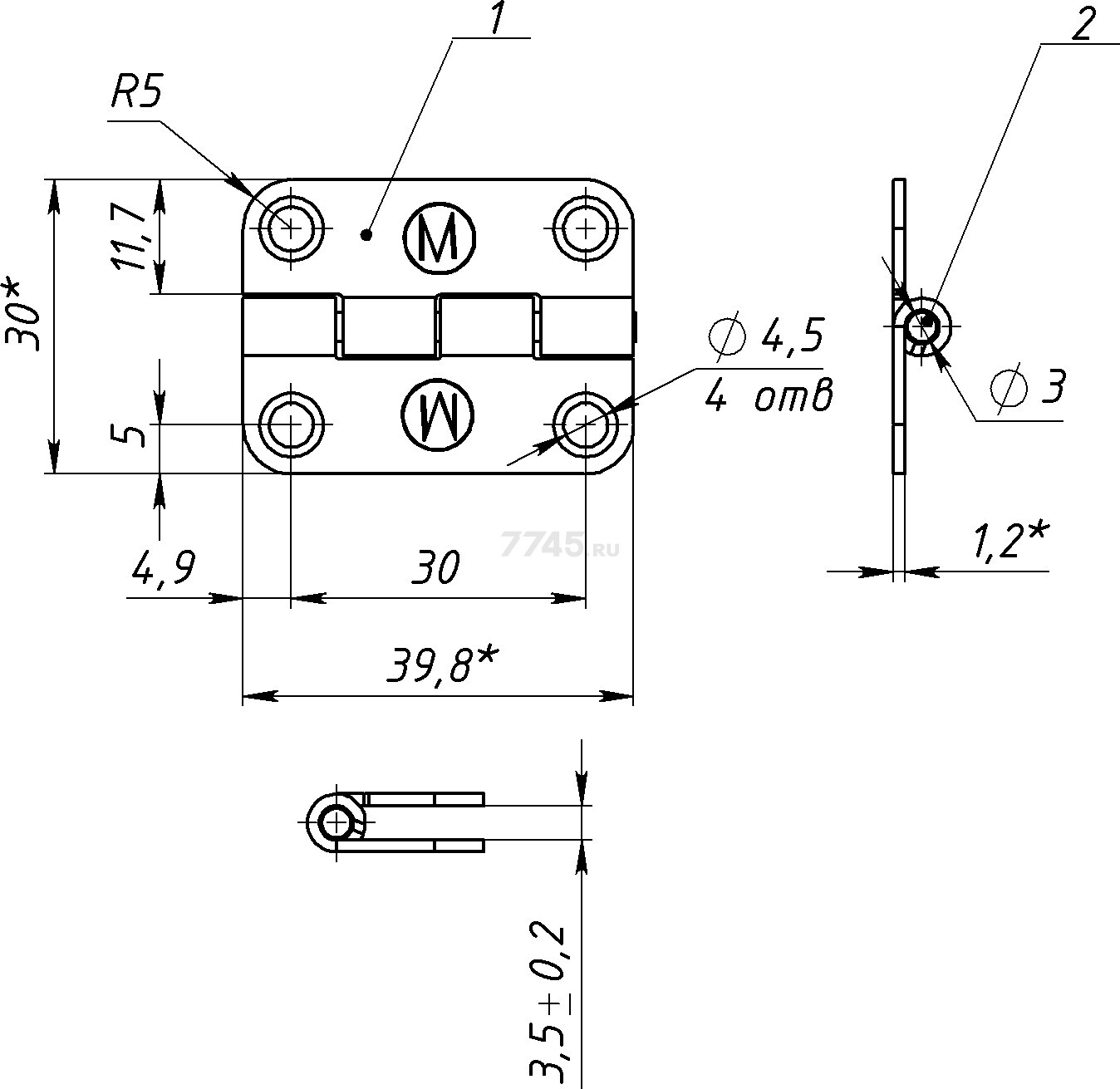 Описание товара Петля дверная карточная врезная 30х40 мм STARFIX (SMP-56826-1)