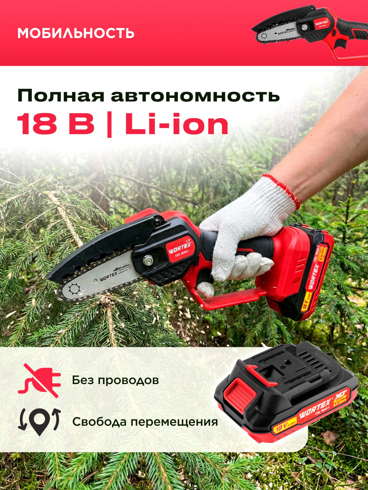 Описание товара Пила цепная аккумуляторная WORTEX LX CEC 2518-1 XLT и Секатор аккумуляторный WORTEX CBS 2030 ALL1 XLT SET (1329851)