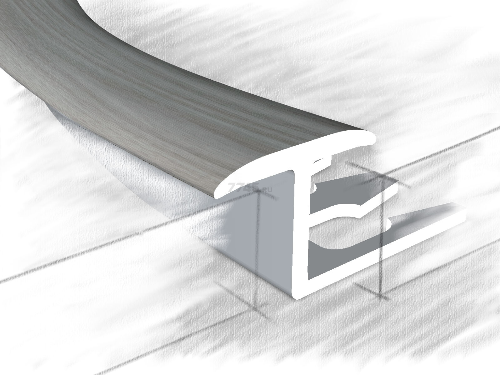 Профиль декоративный алюминиевый КТМ-2000 314-618М 2,7 м дуб снежный —Т-образный профиль для стыковки плитки и ламината. Гнется. Для предания идеального радиуса рекомендуется использовать станок гибочник. Идеальное решение для криволинейных стыков. Крепится на клей для плитки или жидкие гвозди.