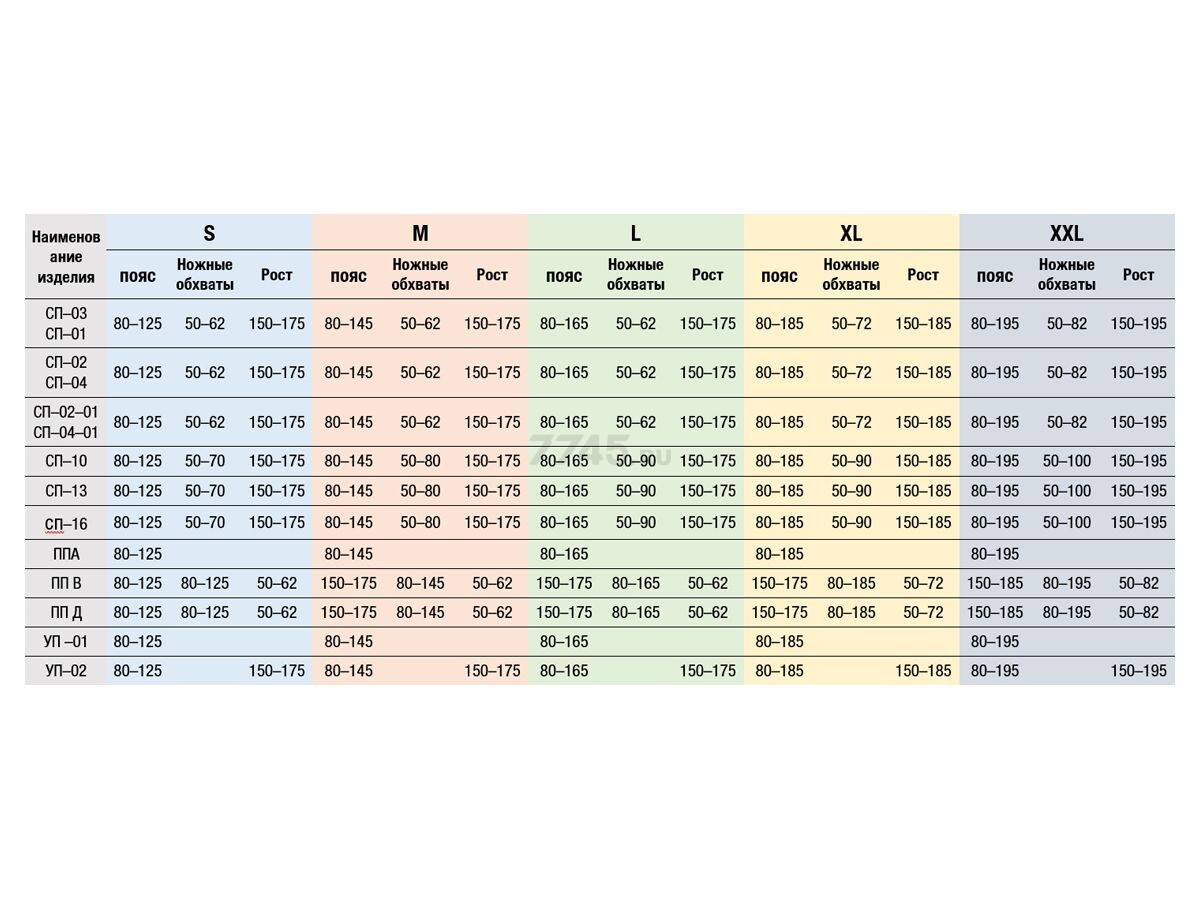 | Величина обхвата талии | М (от 940 до 1240 мм) |