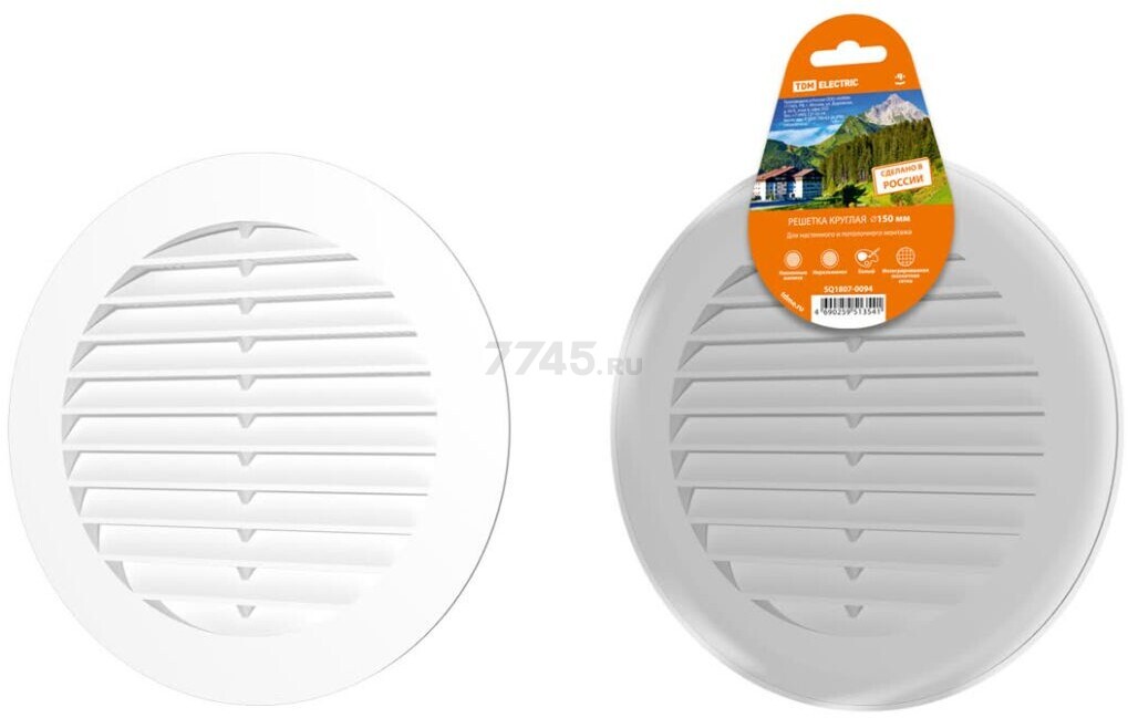 Решетка вентиляционная TDM (SQ1807-0094) – круглая вентиляционная решетка с москитной сеткой, белого цвета, предназначенная для декоративного оформления и защиты отверстий приточно-вытяжной вентиляции. Оснащена фланцем диаметром 150 мм и имеет внешний диаметр 200 мм. Подходит для настенного и потолочного монтажа. Конструкция с наклонными жалюзи предотвращает обратный поток воздуха и попадание насекомых. Крепление осуществляется на клей или с помощью шурупов. Решетка применяется в санузлах, ванных комнатах, кухнях и общественных помещениях, обеспечивая аккуратный внешний вид и эффективную вентиляцию.