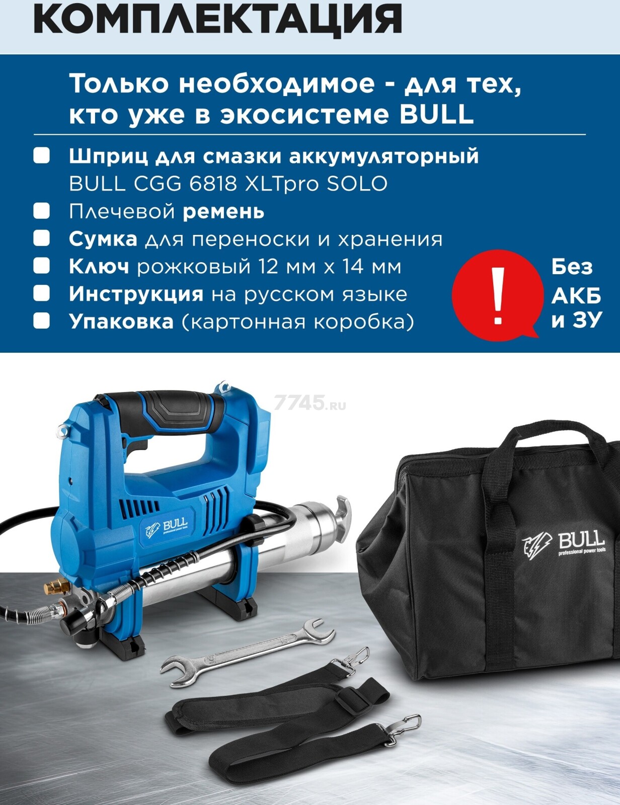Информация о товаре Шприц для смазки аккумуляторный BULL CGG 6818 XLTpro Solo (1325893)