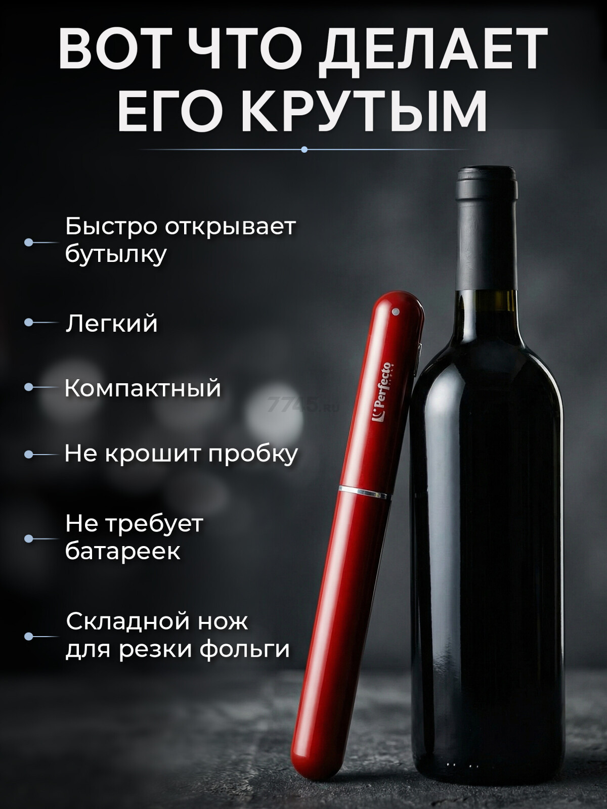 Описание товара Штопор пневматический PERFECTO LINEA Starcook красный (39-212032)