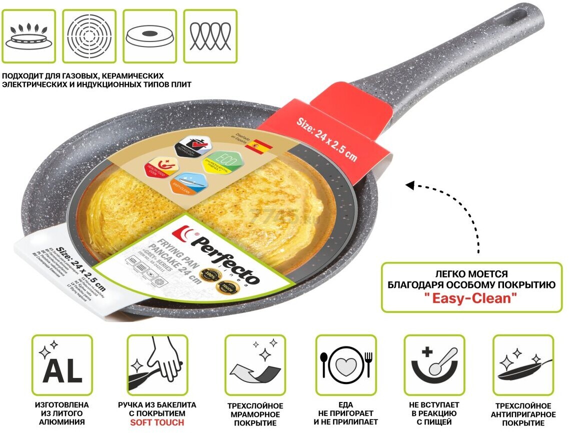 Информация о товаре Сковорода алюминиевая блинная 24 см PERFECTO LINEA Grey (55-242111)