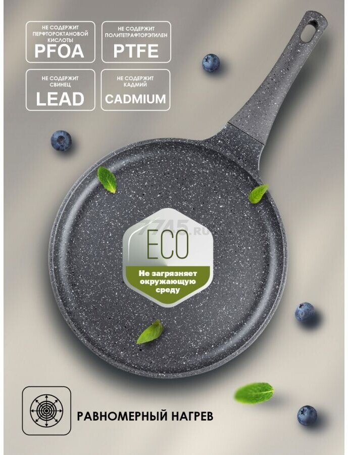 Описание товара Сковорода алюминиевая блинная 24 см PERFECTO LINEA Grey (55-242111)