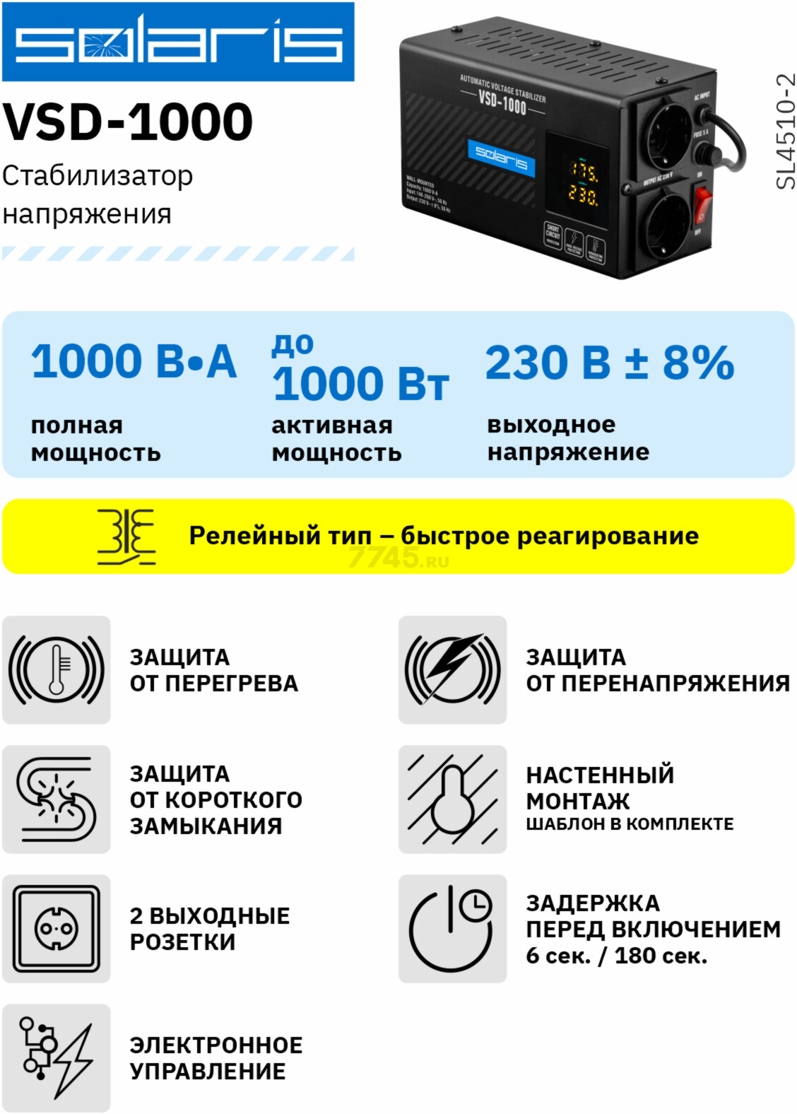 Описание товара Стабилизатор напряжения SOLARIS VSD-500 (SL4510-1)