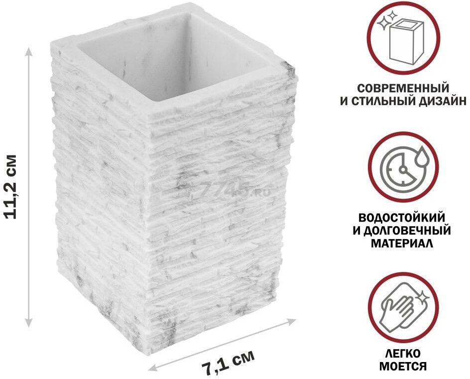 Стакан PERFECTO LINEA StoneWave белый (35-130812) выполнен из полирезины — композитного материала, реалистично имитирующего природный камень. Его гладкая, приятная на ощупь поверхность и лаконичная форма гармонично впишутся в интерьер ванной комнаты, добавив ей чистоты и утончённости.
