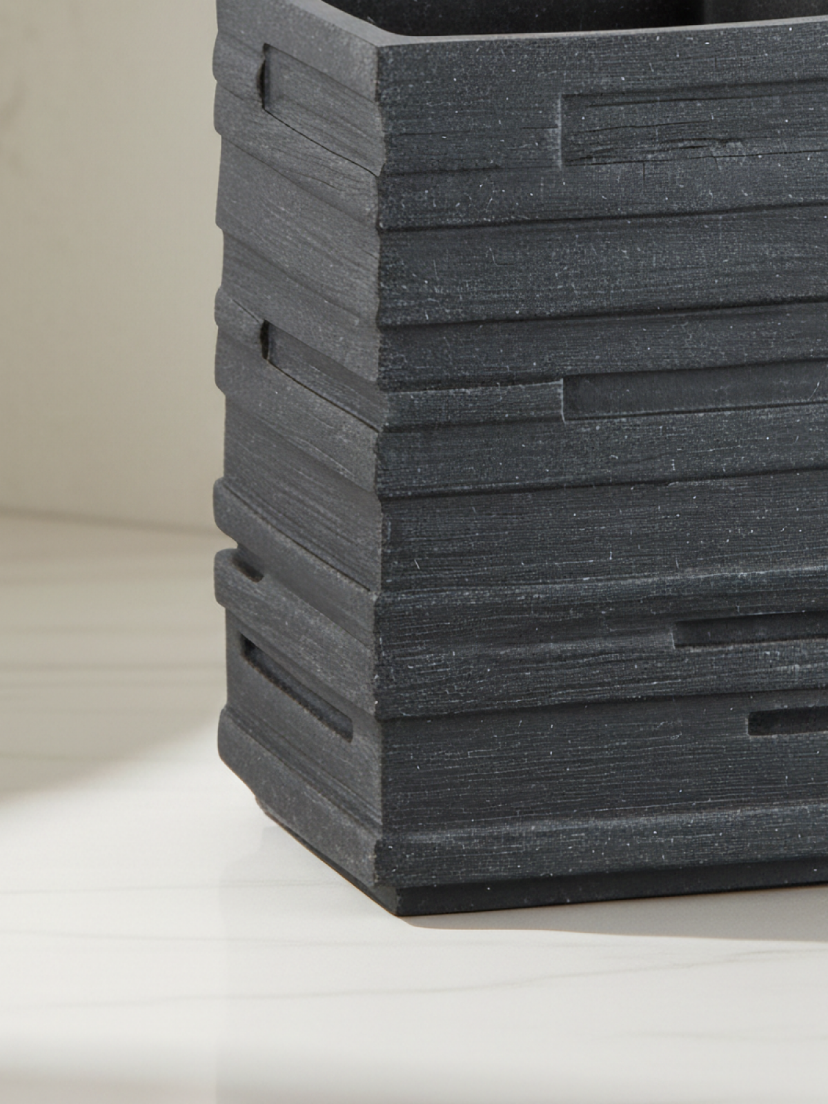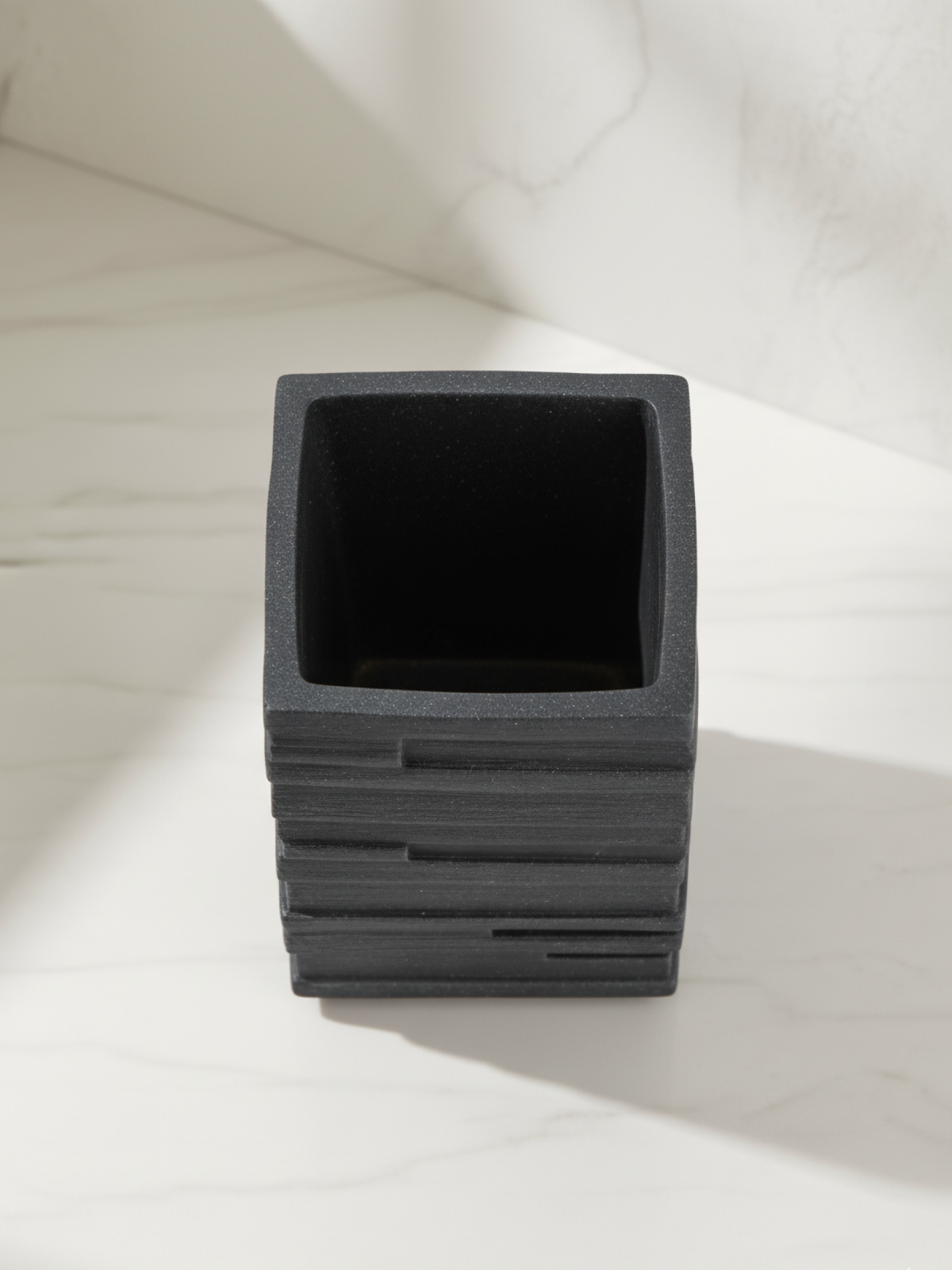 Стакан PERFECTO LINEA Weathered Sand черный (35-151301) имеет необычный дизайн, созданный с помощью композитного материала: полирезина под натуральный камень. Благодаря такой структуре изделие имеет низкую теплопроводность, приятное на ощупь, а также устойчиво к влаге и повышенным температурам. Преимущества товаров для ванной комнаты из полирезина: