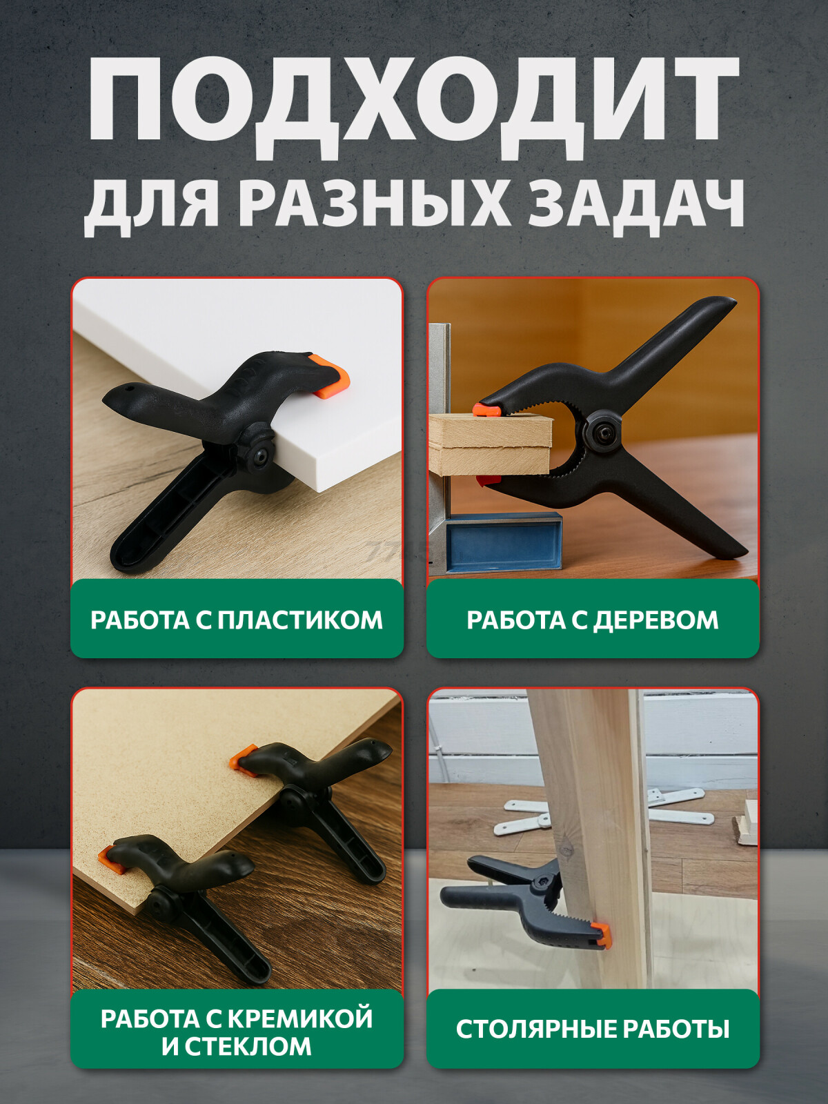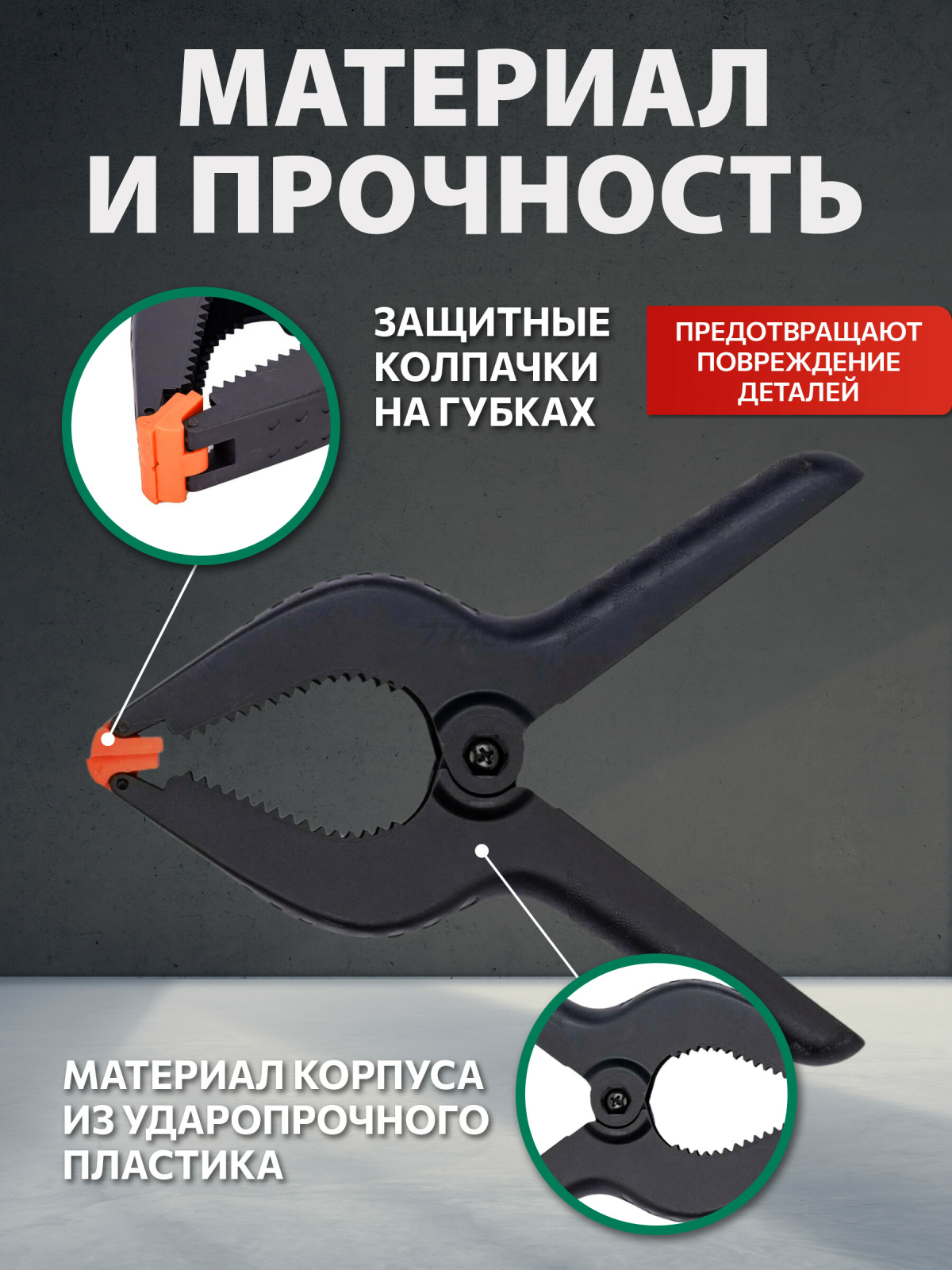 Струбцина пружинная 150 мм ВОЛАТ (14010-15) предназначена для закрепления деталей при склеивании и сборке изделий, можно использовать для зажима предметов и деталей из стекла или керамики (мягкие накладки не повреждают деталь). Представляет собой пластиковую прищепку с пружинным механизмом.