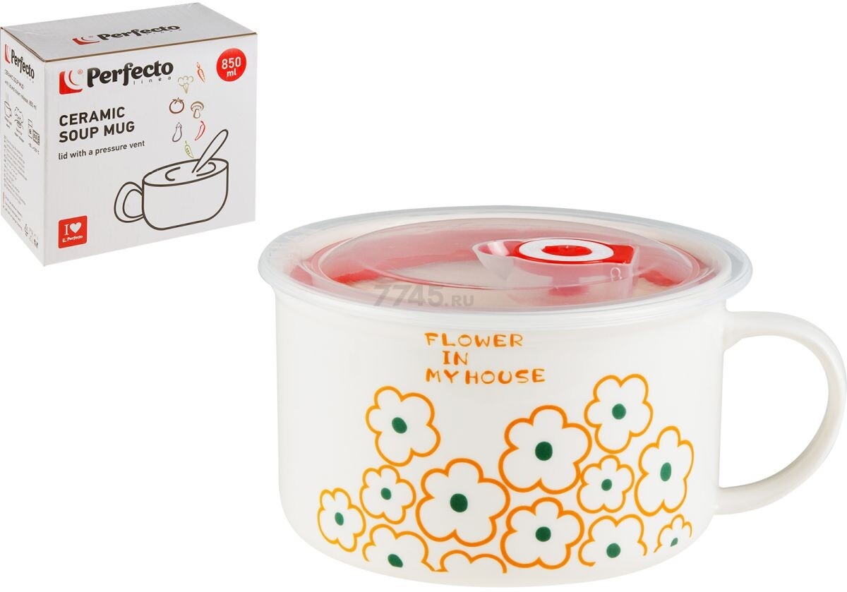 Супница керамическая PERFECTO LINEA Florals-2 850 мл (17-902167) подходит для супов, бульонов и напитков. Крышка позволяет сохранять содержимое горячим. Благодаря клапану можно разогревать содержимое в микроволновой печи, не снимая крышки (при открытом клапане).