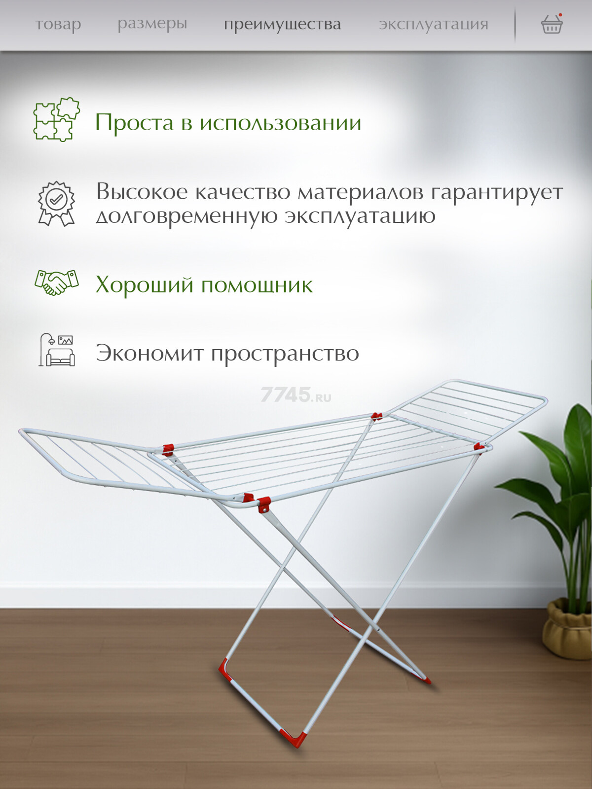 Описание товара Сушилка для белья напольная PERFECTO LINEA Stella бело-красная (46-021843)