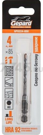 Информация о товаре Сверло по бетону твердосплавное спиральное 4х85 мм GEPARD HRA 92 (GP0224-850)