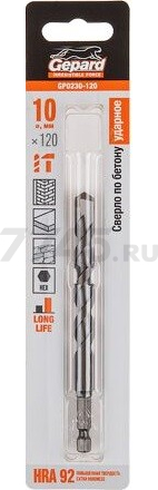 Описание товара Сверло по бетону твердосплавное спиральное 10х120 мм GEPARD HRA 92 (GP0230-120)