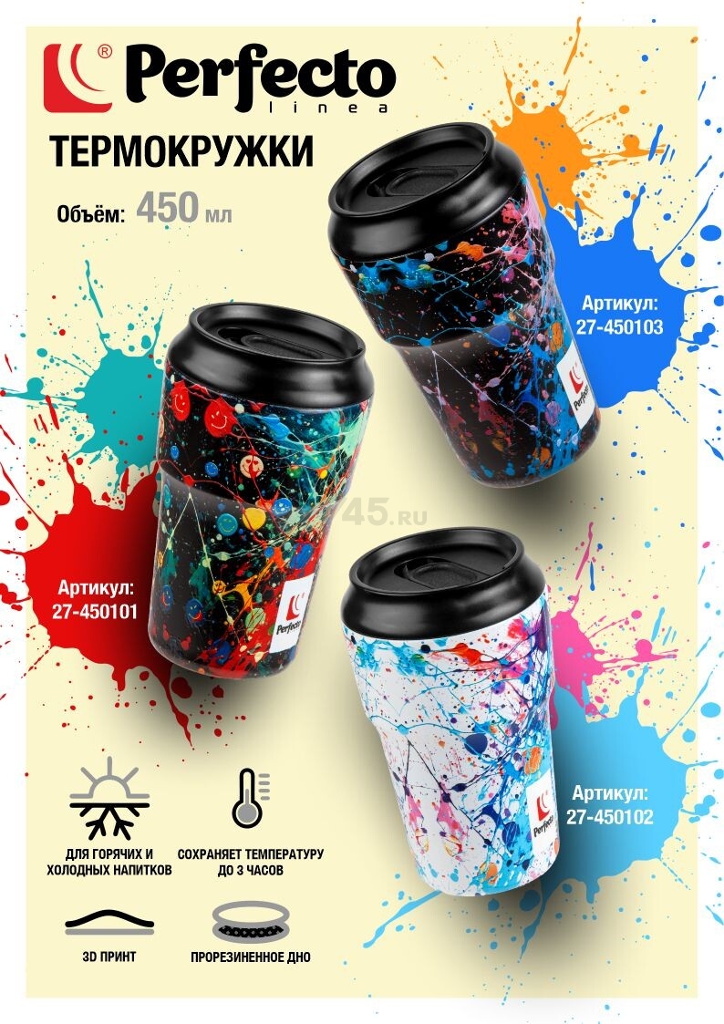 Описание товара Термокружка PERFECTO LINEA серия 3D 0,45 л dark splash (27-450103)