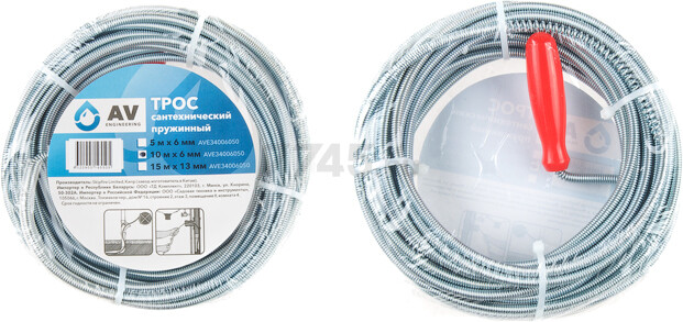 Информация о товаре Трос сантехнический пружинный диаметр 6 мм длина 10 м AV ENGINEERING AVE340 (AVE34006100)