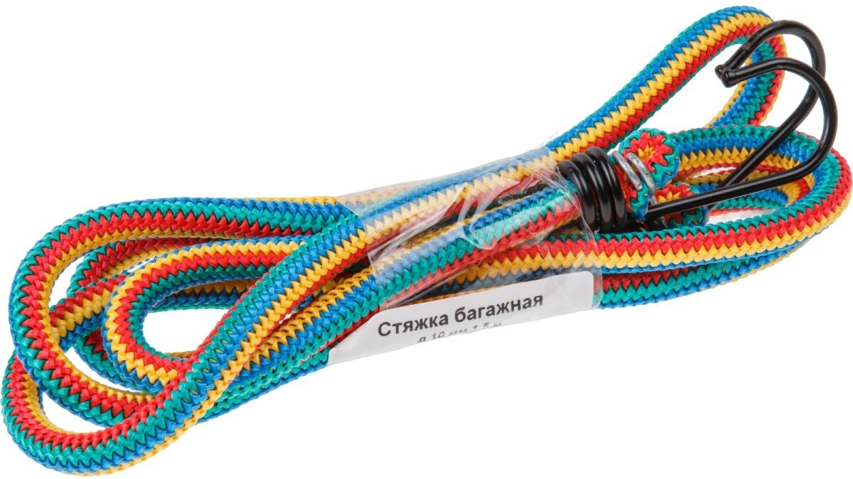 Трос стяжной 10 мм 1,5 м (4811591001651) - это эластичный крепеж с крюками, предназначенный для надежной фиксации грузов на автомобилях, мотоциклах, багажниках на крыше или при транспортировке вещей.