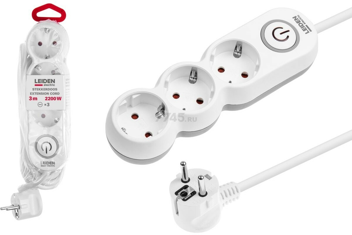 Удлинитель 3 м 3 розетки 2,2 кВт с заземлением и выключателем LEIDEN ELECTRIC (805042)