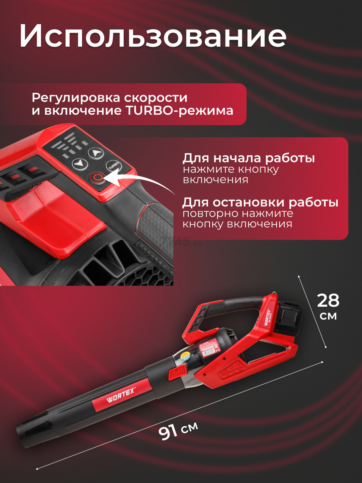 - Воздуходувка аккумуляторная WORTEX BB 2536 D XLT SOLO