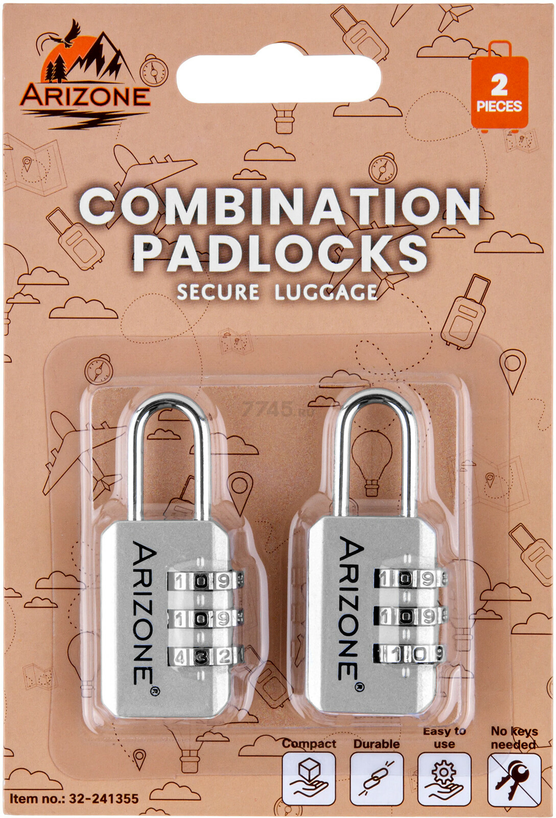 Описание товара Замок навесной кодовый ARIZONE серебро 2 штуки (32-241355)